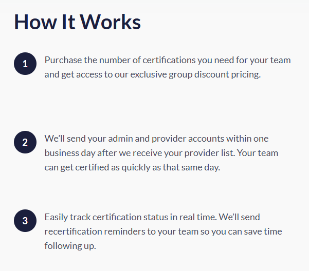 Certifying your providers has never been easier. Get on-demand, online emergency life support training without fixed schedules. Our experienced team serves diverse healthcare organizations, offering tailored solutions for your training needs.